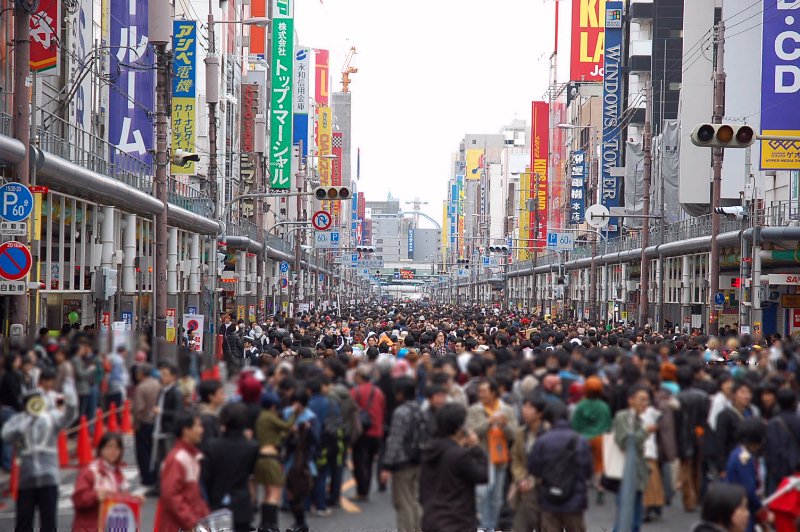 いやまあウォーリーはいませんが,開催中はこれぐらいの人出がありました.現場では気づきませんでしたが今みると7ELEVEnのユニフォームの方が何やら冷たいもの売り歩いていますね.ほかにも,よく見ると他にも何か見つかるかも.画像は歩道橋のあたりから通天閣方向に撮影したもので,クリックすると大きくなります.いろいろ見たい方は日本橋関連サイトやこことかでどうぞ.先の記事でも書きましたが当日は朝から雨天となったものの開会の挨拶からパレードが始まる時間には適当に雨も上がり,少し曇っているもの画像のように悪くない状態でした.