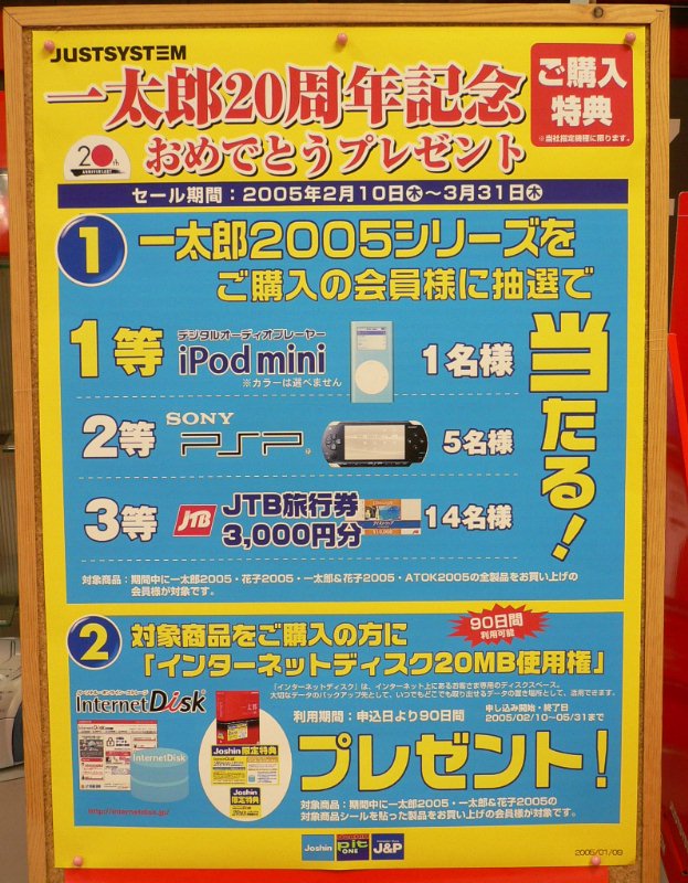 JUSTSYSTEM・上新電機 一太郎20周年記念おめでとうプレゼント