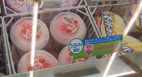 ふたば ふんわりかき氷いちご 103円.練乳入り苺かき氷もあるよ.
