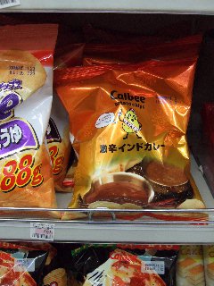 カルビー_ポテトチップス・激辛インドカレー_124円_LAWSONにて いい感じで辛そうな激辛インドカレーと言うのが出てきました.食ってみるとハバネロほどではない.酸っぱくはないがカラムーチョクラスか.値段は124円.