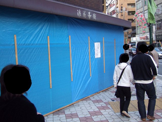 浪花善哉_工事中 ブルーシートで覆われて工事中の浪花善哉ですが,工事期間が結構長いですね.