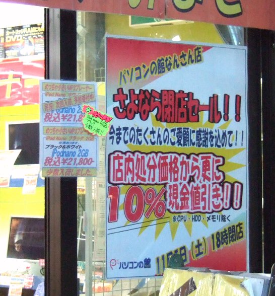 11月5日午後6時を持って閉店する。パソコンの館なんさん店にて
