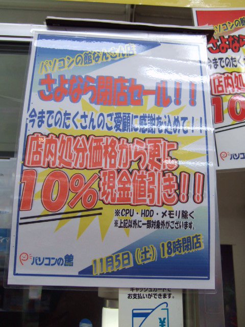 パソコンの館 なんさん店 11/05をもって閉店 閉店セール中