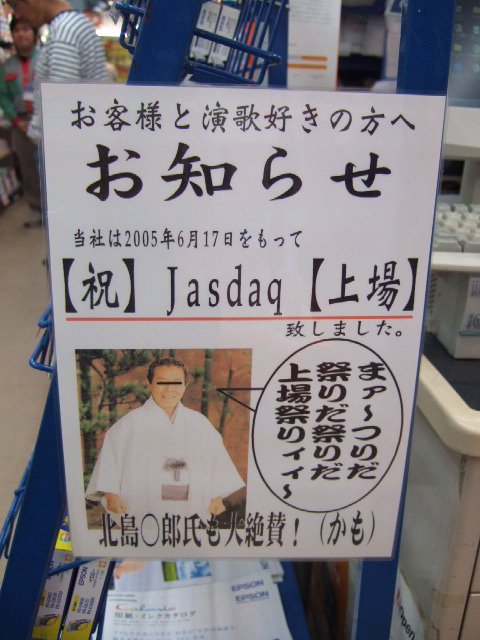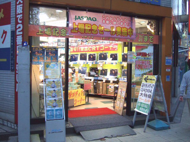 入り口にはJASDAQ上場セールの表示の中に閉店セールの告知をみつけた.