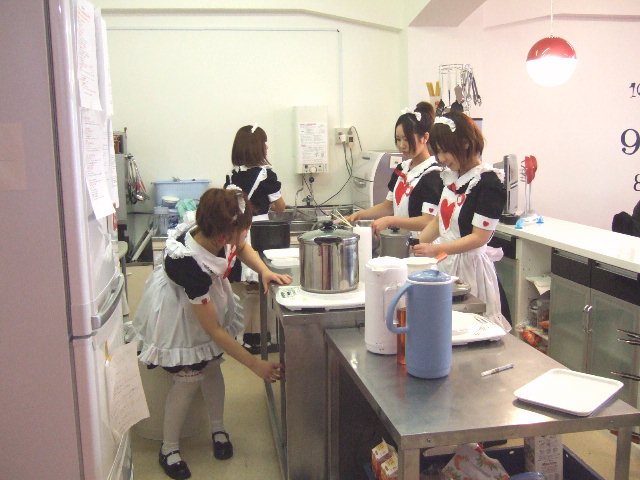 料理は洋食屋さんで修行してきたというメイドさん達自ら作るとのこと.新今宮の洋食屋さんで修行してきたとのこと.またそのお店も紹介したい.席からも作っている様子が見える.
