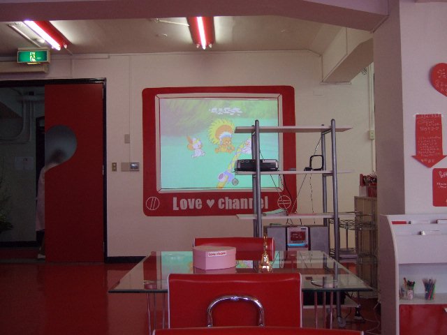 Love・channelと書かれた壁面にはプロジェクターでトム&ジェリーが投影されていた.