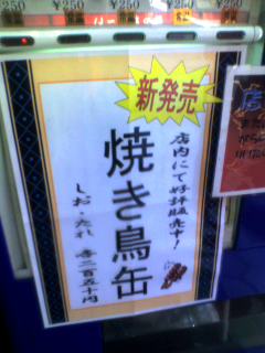 また同じブランドでやきとり缶をみつけた。塩とタレの二種で山積み。結構売れているとか。