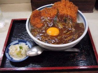 典型的な蕎麦屋のカレールーですね.片栗粉でとろみを付けて,ダシを利かせたルーでした,味は悪くありません.カツ丼と同じで量がありましたので,半分食べて一人前といった印象でした.半分まで食べたらいったん休憩をしたのにち残り半分をなんとか食べましたが晩飯はいらなくくらいのお腹になりました.カツ丼のように二重にはなっていませんが,量的には十分です.かなり腹減った状態で食ったんですけど.